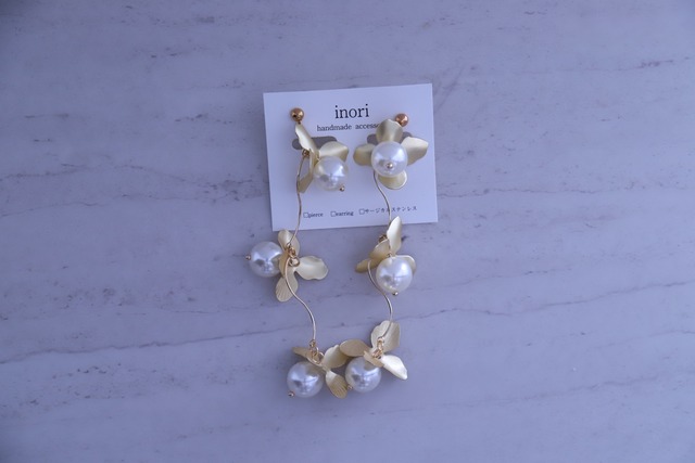 ウェーブフラワーチェーン ゴールド イヤリング【inori 73】