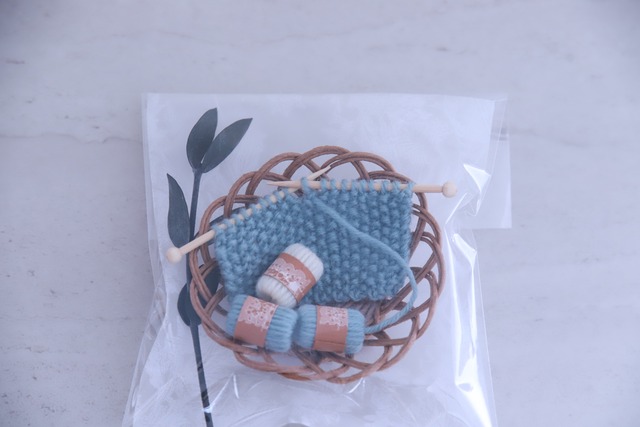 花びらかごと編みかけニット ブルー【アトリエmaple 8】