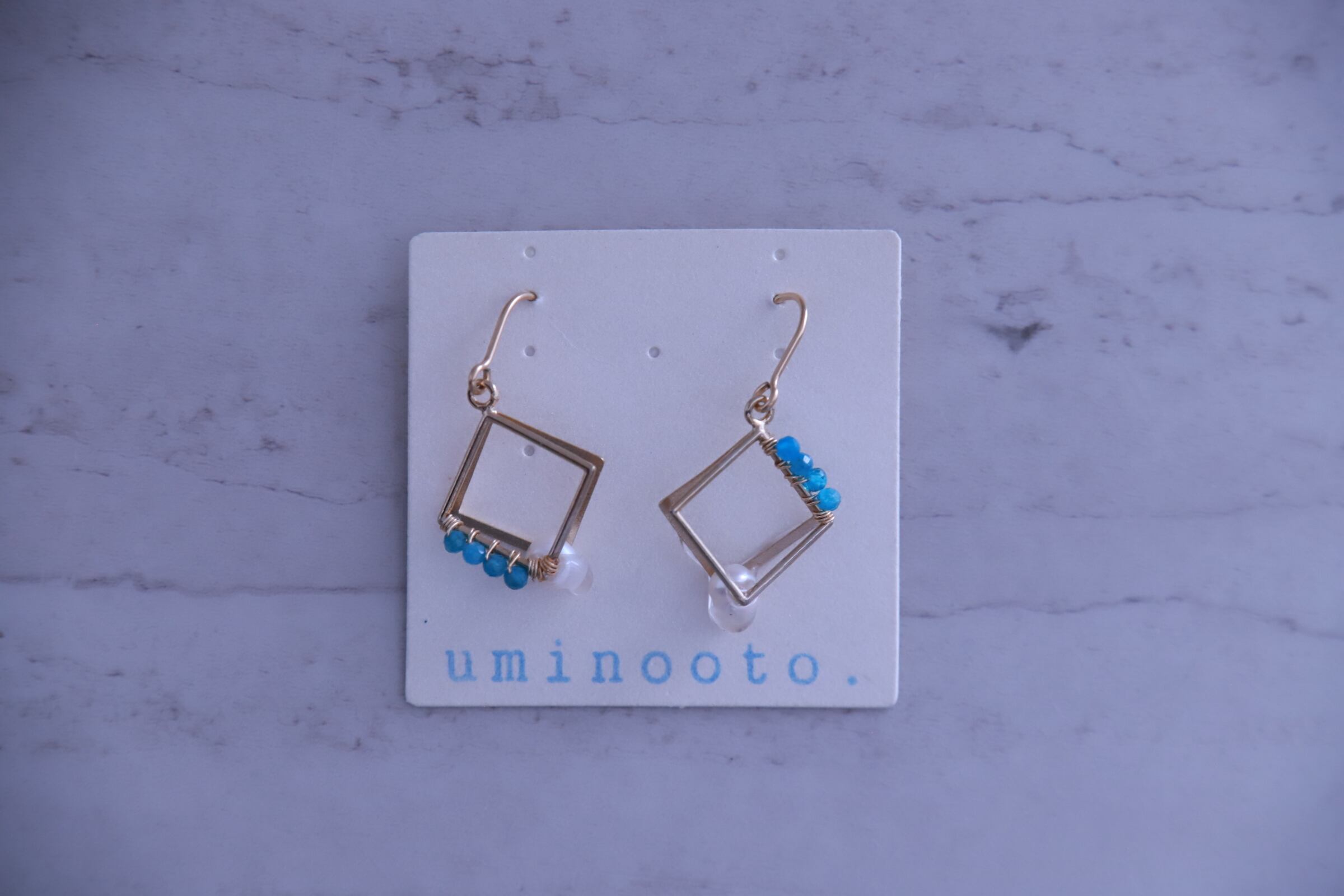 14kgf ブルーアパタイト 淡色パール スクエアピアス 【uminooto 153】