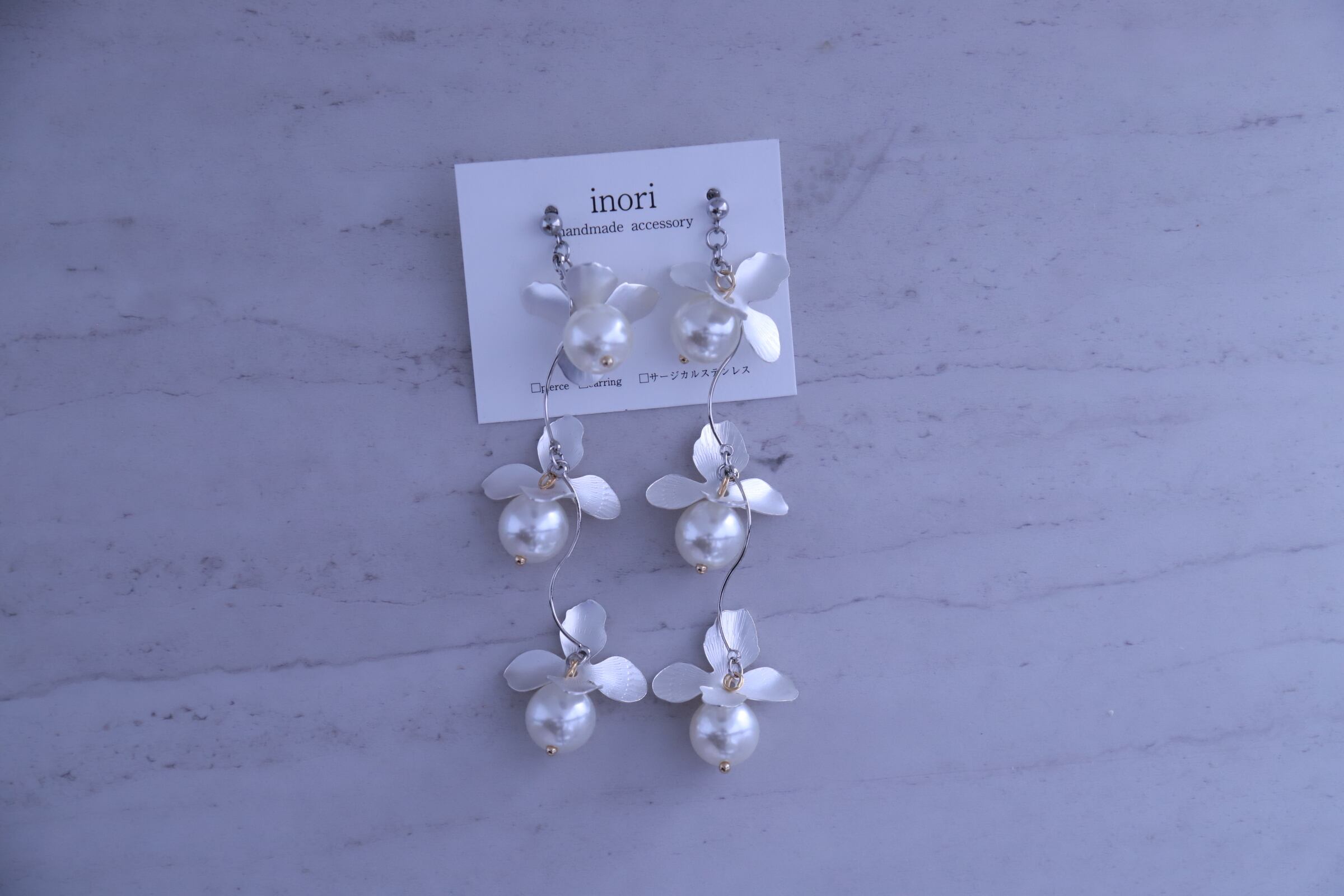 ウェーブフラワーチェーン シルバー ピアス【inori 74】