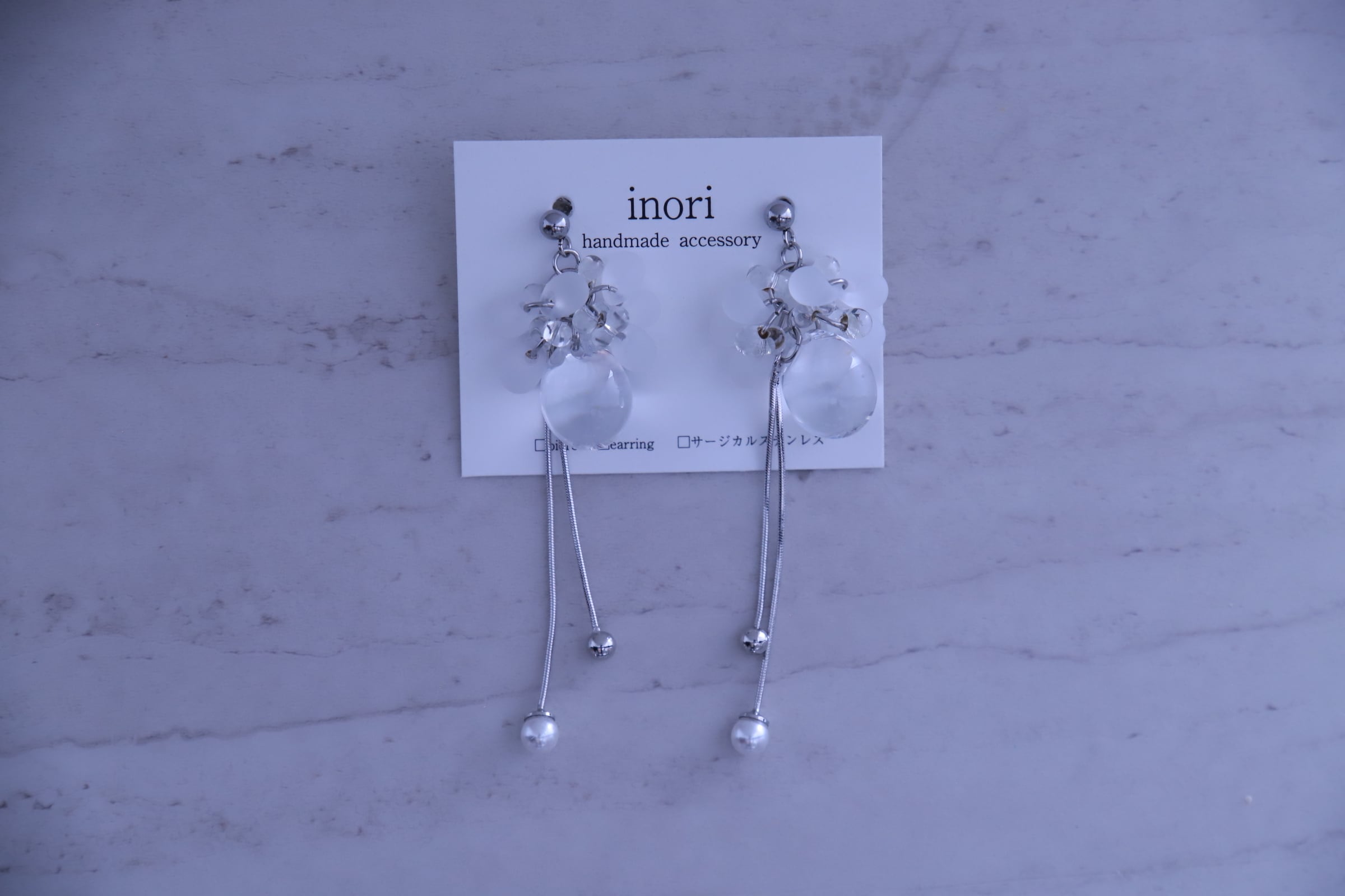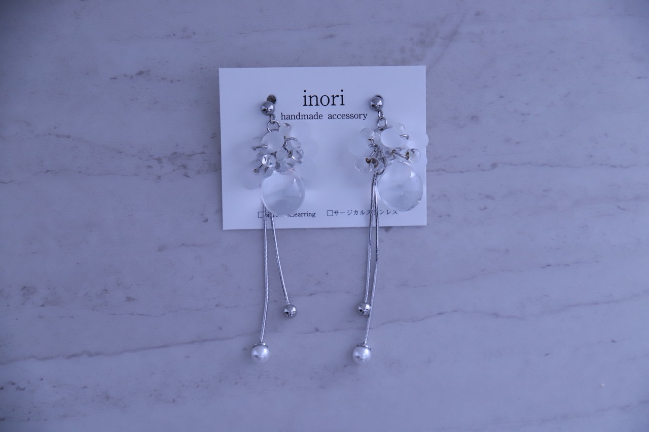 クリアビーズチェーン シルバー ピアス【inori 64】
